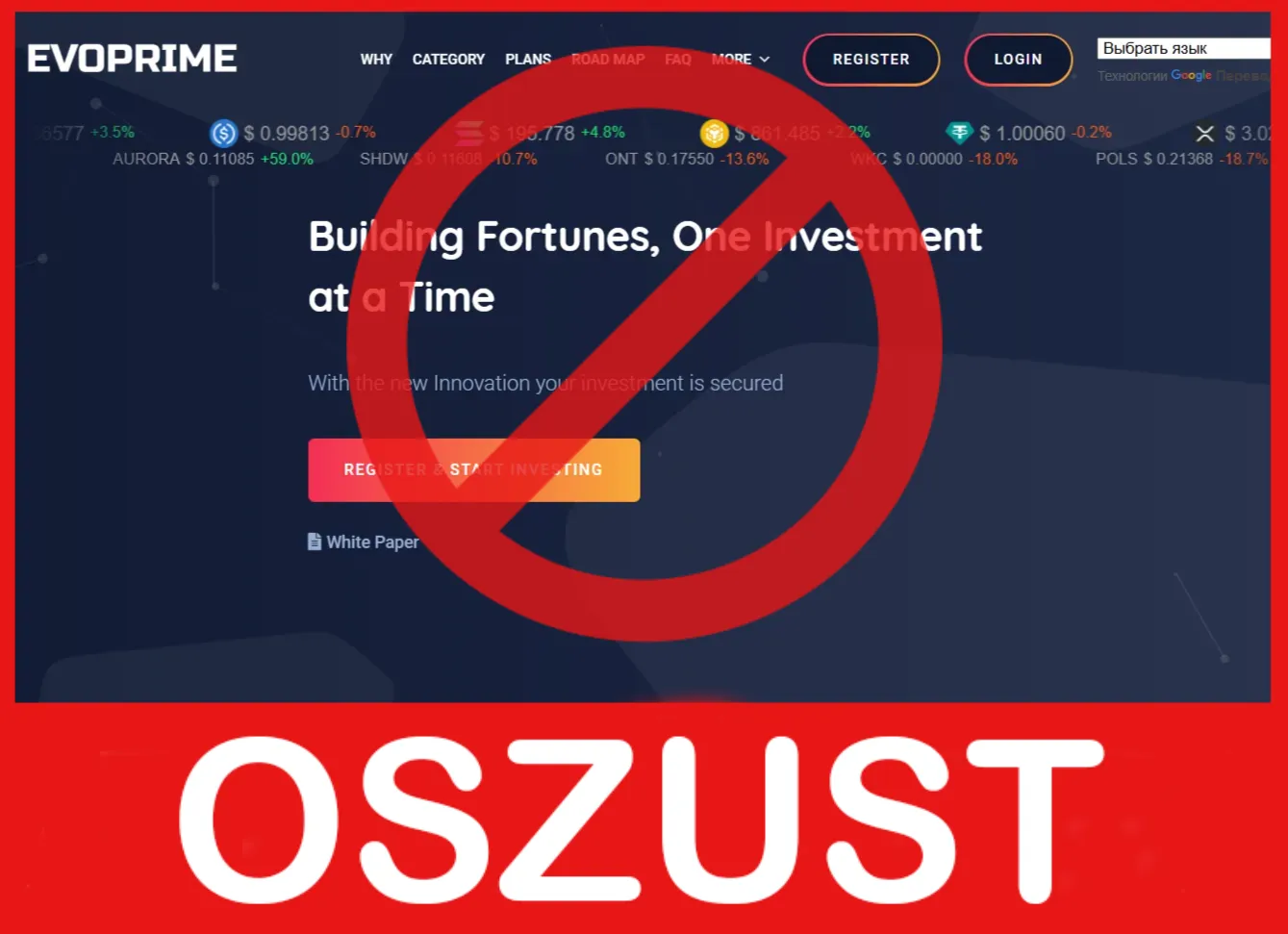 EvoPrime to typowy przykład brokera-oszusta, który wykorzystuje piękne obietnice, presję psychologiczną i skomplikowane schematy, aby przejąć środki klientów. Firma nie posiada oficjalnej licencji, jej dane rejestracyjne są nieprawdziwe, a opinie poszkodowanych potwierdzają masowe oszustwo.