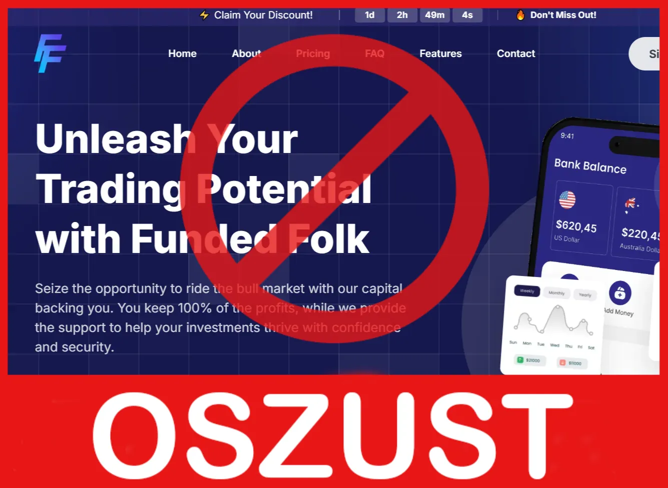 FundedFolk pozycjonuje się jako platforma brokerska do handlu i inwestycji, oferując użytkownikom możliwość szybkiego pomnażania kapitału poprzez handel różnymi instrumentami finansowymi. Na stronie oszusta znajdują się obietnice wysokich zysków, natychmiastowej rejestracji i minimalnych początkowych wpłat, co od razu przyciąga początkujących i osoby szukające szybkiego dochodu.