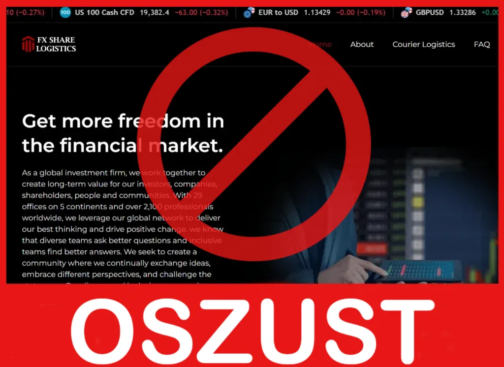 W ostatnich latach rynek handlu online przyciągnął wielu inwestorów, a niestety ta atrakcyjność jest wykorzystywana przez oszustów do oszukiwania ufnych osób. Brokerzy obiecujący stabilny dochód często ukrywają swoje prawdziwe zamiary i działalność. Jednym z takich przypadków jest firma FX Share Logistics, która budzi poważne podejrzenia co do swojej działalności. W tym artykule szczegółowo omówimy informacje na temat brokera, jego oszukańcze schematy, oznaki, dzięki którym można rozpoznać oszusta, oraz sposoby ochrony przed stratami. Pomoże to nie stać się ofiarą oszustwa i podjąć odpowiednie kroki w odpowiednim czasie.