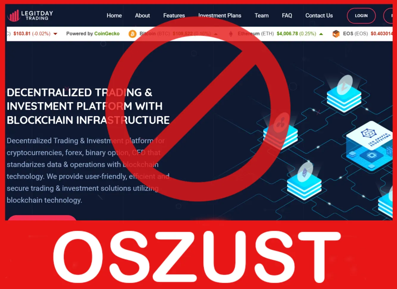 LegitDay Trading to klasyczny przykład platformy oszukańczej: fałszywe licencje, niemożność wypłaty środków, presja na klienta i nierealne obietnice dochodów. Wszystkie te oznaki jednoznacznie wskazują na nieuczciwość brokera.