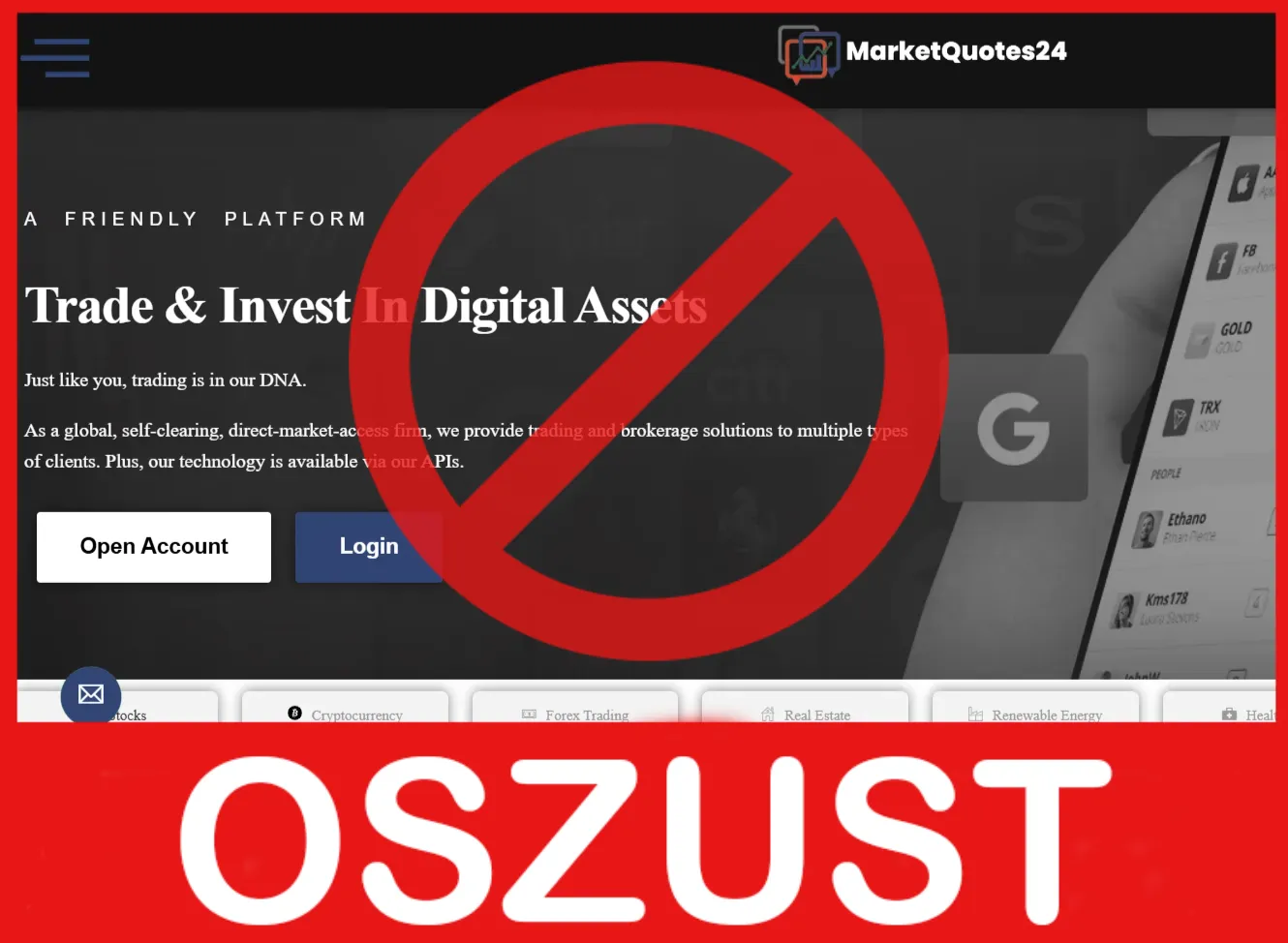 MarketQuotes24 przedstawia się jako platforma online do handlu instrumentami finansowymi, w tym forex, kryptowalutami i CFD.