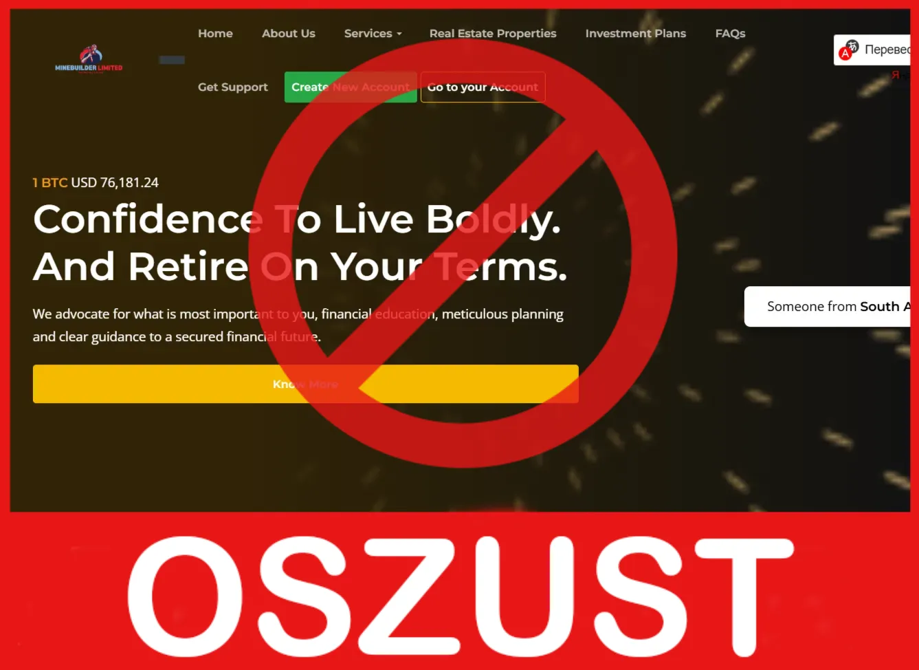 Minebuilders Limited to typowy przykład oszukańczego brokera, który działa wyłącznie po to, aby oszukać ufnych inwestorów i przywłaszczyć sobie ich pieniądze. Firma nie posiada licencji, ukrywa swoją prawdziwą tożsamość, stosuje psychologiczne sztuczki i utrudnia wypłatę środków. Tysiące osób już doświadczyły problemów przez współpracę z tym projektem.