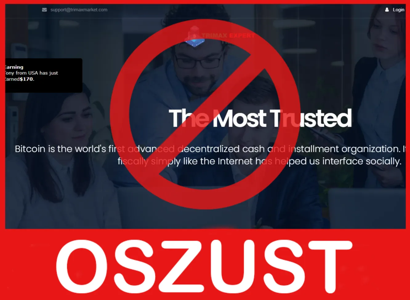TrimaxExpert Trade to oszukańczy broker, którego celem jest wyłudzenie pieniędzy i zniknięcie. Brak licencji, natrętni menedżerowie, blokowanie wypłat i liczne negatywne opinie – wszystko to wskazuje na klasyczny schemat oszustwa finansowego.