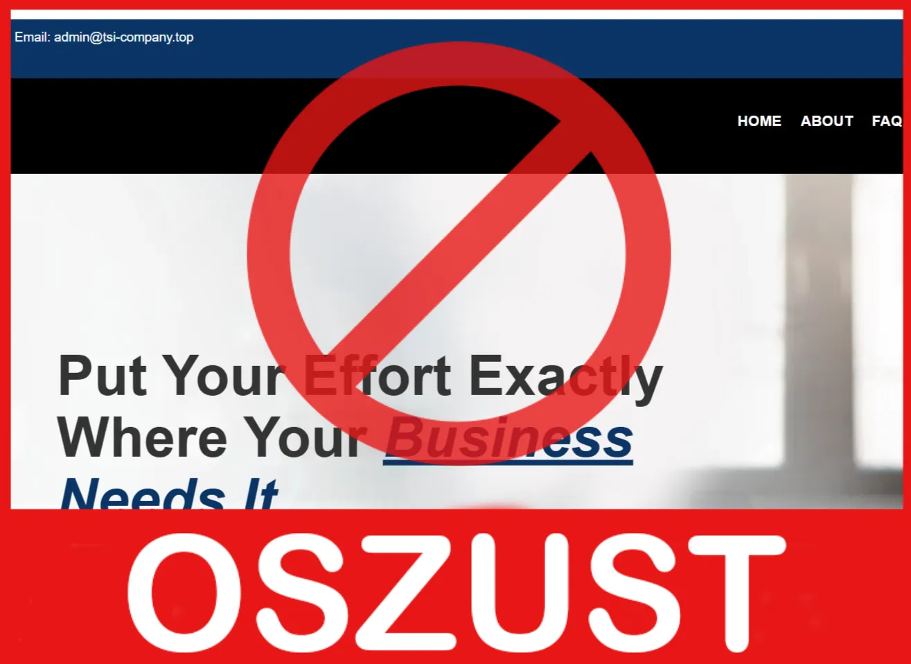 Ponadto domena tsi-company.top została zarejestrowana niedawno, co potwierdza jej tymczasowy i nietrwały charakter. Oszuści często zmieniają domeny, by uniknąć blokad i złej reputacji.
